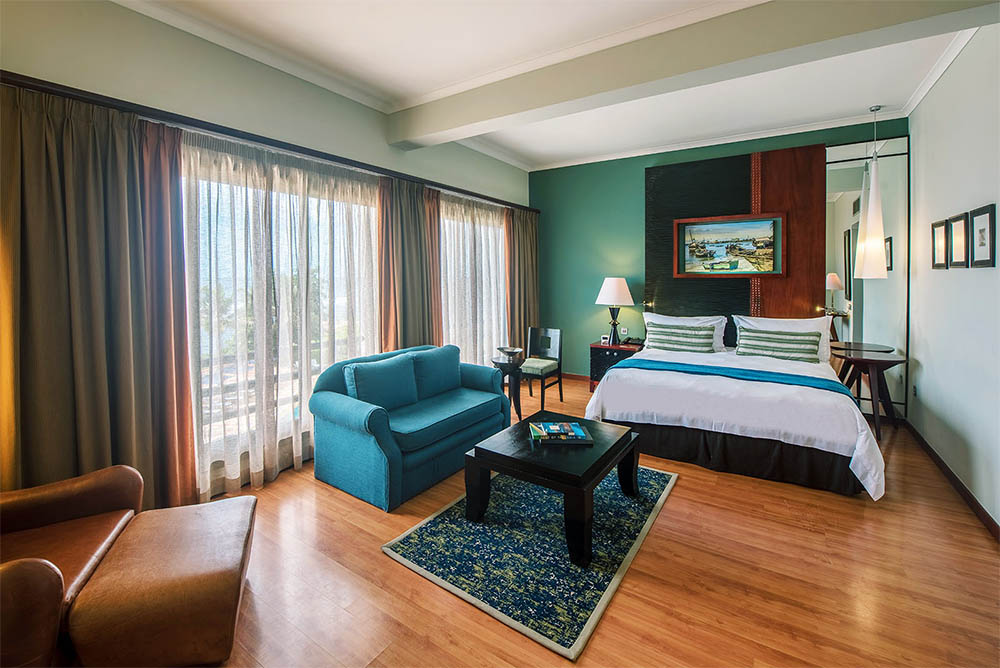 Experience refined luxury in our large air-conditioned Superior Deluxe Sea View Room with a king-sized bed. Elegantly appointed, it offers a comfortable sofa for you to enjoy uninterrupted views of the Indian Ocean from the first or second floor. This larger than normal room blends comfort with convenience, offering a spacious newly renovated bathroom with a walk-in shower, hairdryer, minibar, tea and coffee facilities, a safe, 50-inch smart TV, a comfortable work station, wireless phone chargers, soft gowns with slippers. Whether you are working or unwinding, the soothing sea view transforms your stay into a serene escape in this larger room.
